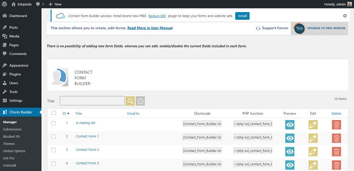 Form Maker plugin stands out from the crowd as one of the best free WordPress contact form plugins. It is an intuitive plugin with a drag and drop feature. It has got an attractive interface too. This is a multipurpose contact form plugin. It makes use of CAPTCHA to ward off spam. It is 100% free.